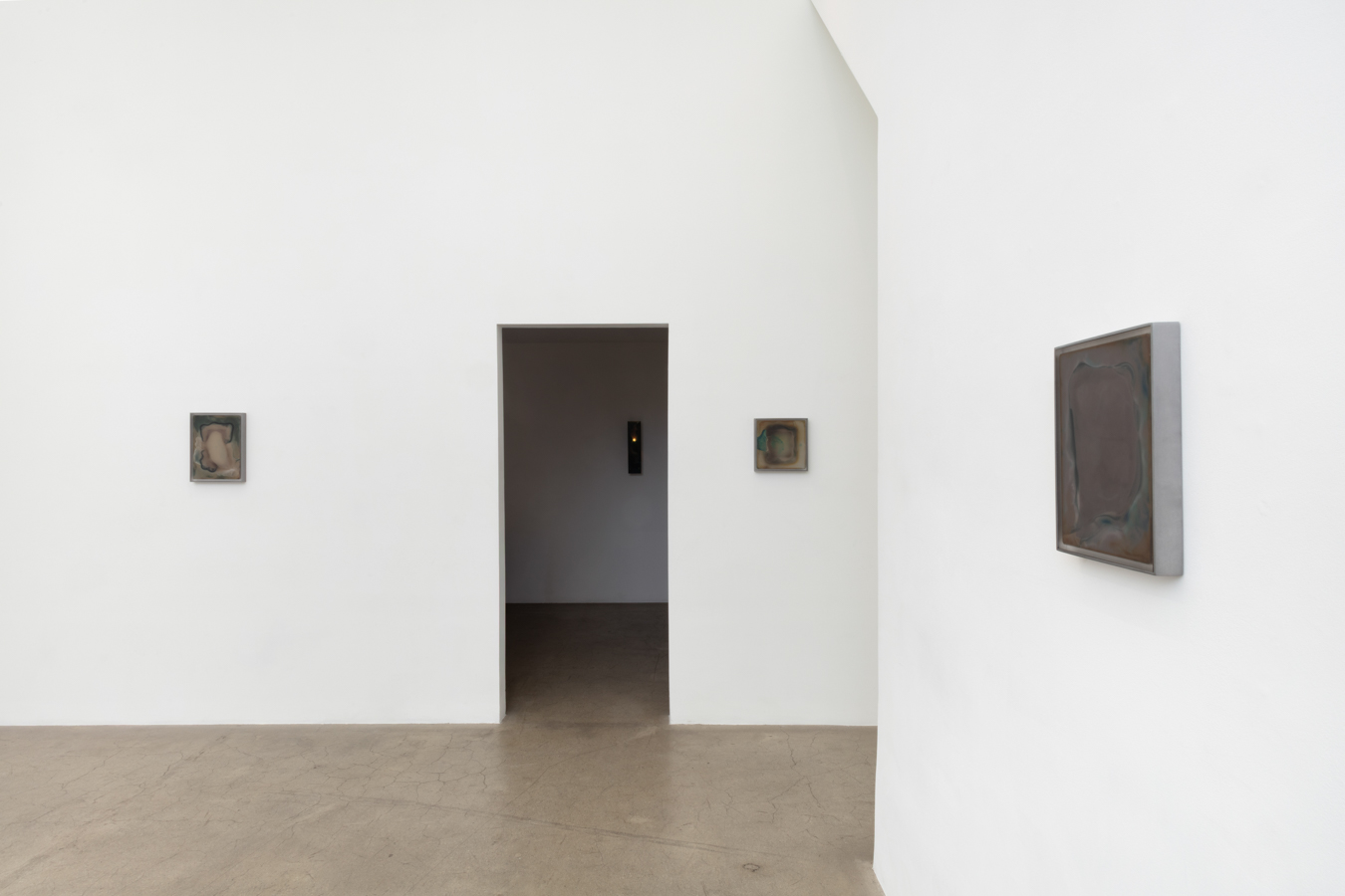 Blue Thin Horizon presents a series of new chemical reaction paintings and candlelit works. Borden’s practice employs a hybrid of chemical and organic processes to create images that resist stasis. These are not fixed pictures but living surfaces, shifting imperceptibly over time. Each work functions as an “anti-captured” portrait of nature, self-generating and in flux, where traces of earlier states remain embedded within the surface.